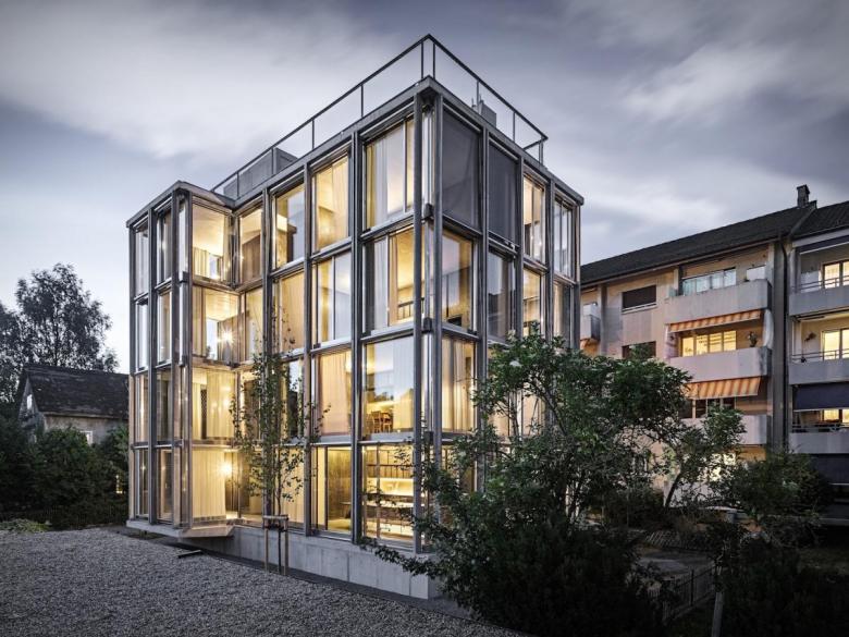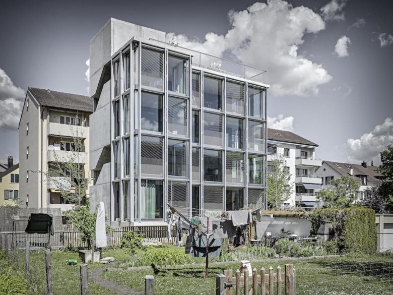 The limited plot led us to develop vertically, and the industrial nature of the nearby Sulzer Areal influenced the materials.