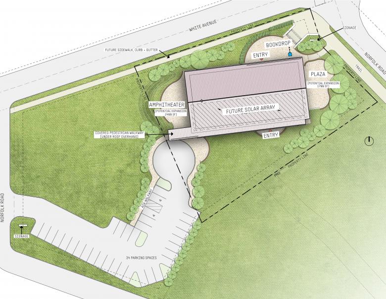 The new library can hold a collection of over 20,000 materials, and includes study tables, casual counter seating for studying or work, lounge seating, window seats, and a cozy fireplace. To strengthen the library’s inclusion efforts, computers with internet access help narrow the digital divide in a community with diverse economic demographics. A makerspace with 3D printer and other hands-on technology options broaden the patron pool, and a community gathering area with a large meeting room is accessible after-hours.