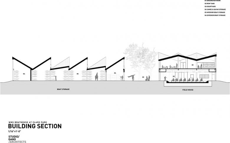 The completion of the WMS Boathouse at Clark Park exemplifies the City's commitment to renewing its waterfront but also to investing in its youth,” said Jeanne Gang of Studio Gang Architects. “The building provides a stimulating and fun space where young people from all over the city can participate in sport and develop important life skills. In this way, the building’s design, inspired by the rhythmic motion of rowing, parallels the forward momentum of efforts to revitalize the river while supporting the vitality of urban communities.”