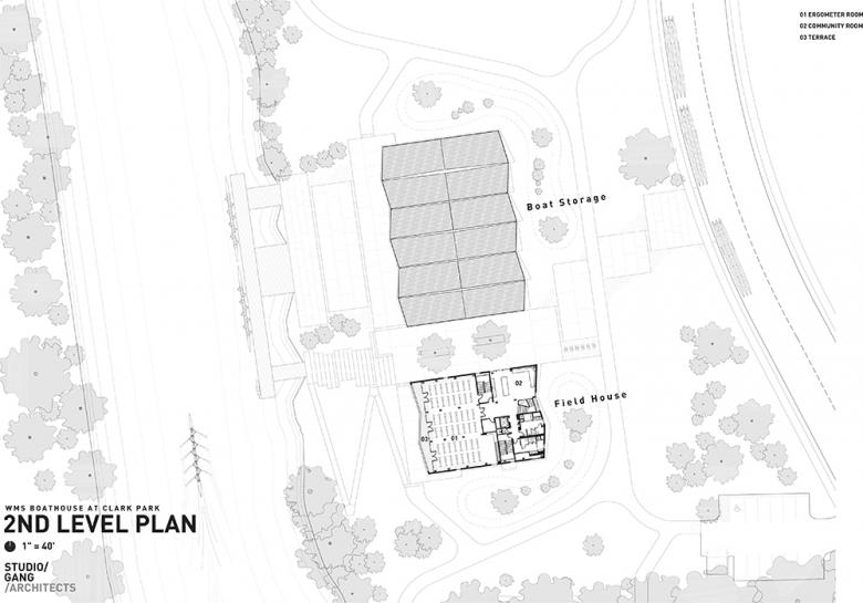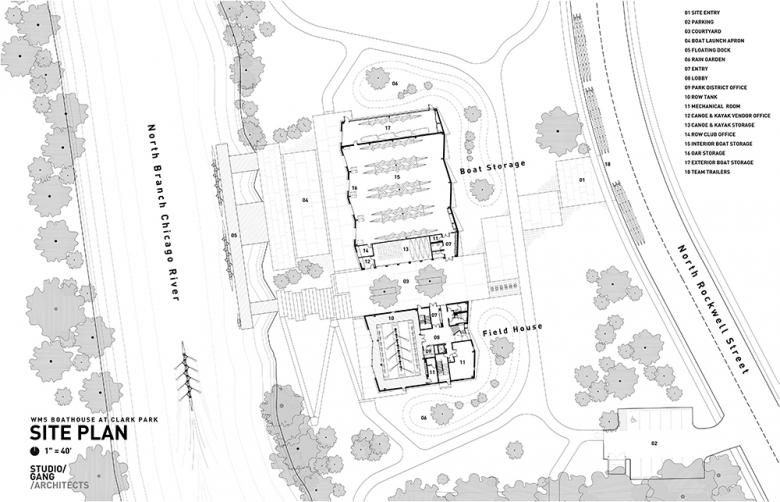 Site Plan: Located at Clark Park in Chicago’s North Center neighborhood, the boathouse and fieldhouse will establish a base for community activities.