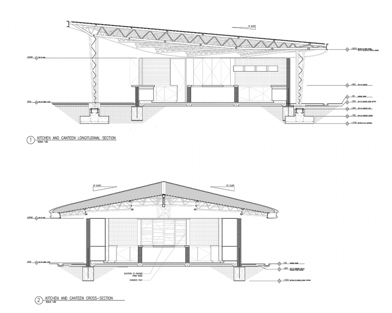 The buildings in Kayonza are mostly small-scale, single-story, self-built homes and shops made from earth, cement, or clay brick. We tried to maintain the small-scale feel at the Women’s Center despite the large program we had to design for. Referencing a Rwandan village as our organizing principle, we clustered human-scaled pavilions to create security and cultivate the sense of community. Rather than having a big building accommodating everything, we broke up the program into smaller individual spaces, using geometries and relationships found in local architecture. Facilities include classrooms, guest lodgings, a demonstration farm – cooled by green roof and retained earth walls – and a marketplace, where women sell products they have made on site.