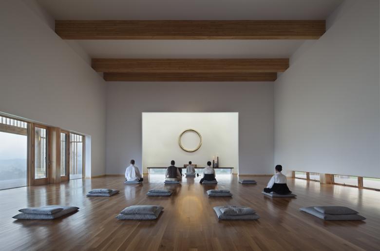 Interior view of Meditation Hall at dawn
