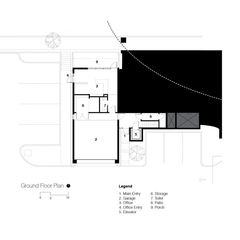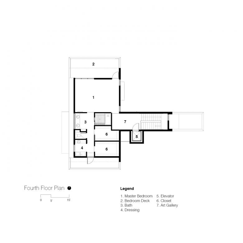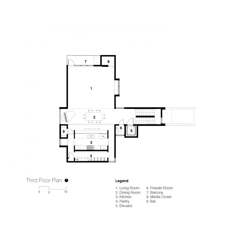 The overall massing is broken down using durable and low maintenance materials. A Cor-ten-clad rectangular form rests atop a ground-face masonry base. The Cor-ten volume is further articulated with a series of large scale carves that form balconies and window openings that frame views. Planar elements clad in charcoal standing seam metal encase the circulation wing and fourth floor master suite and employ glass and charred wood infill.
