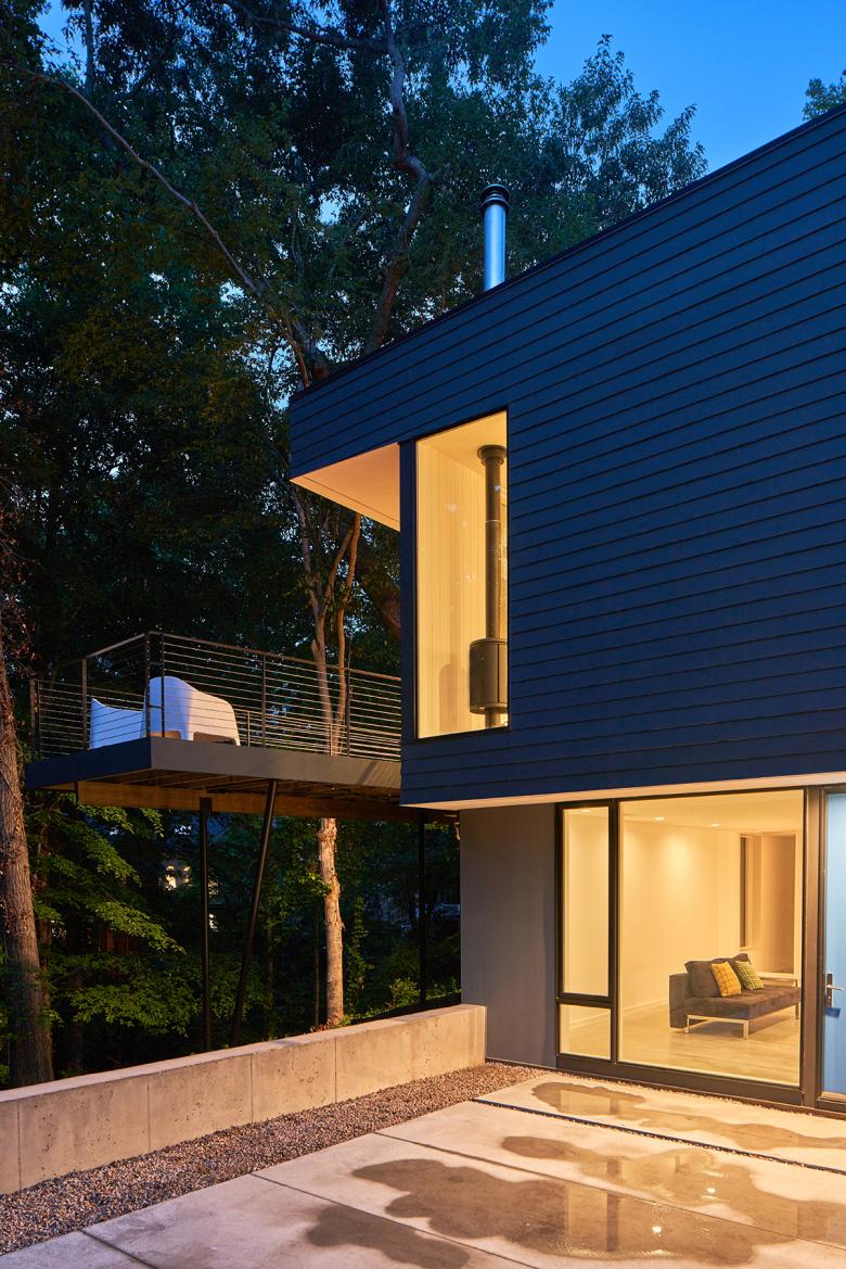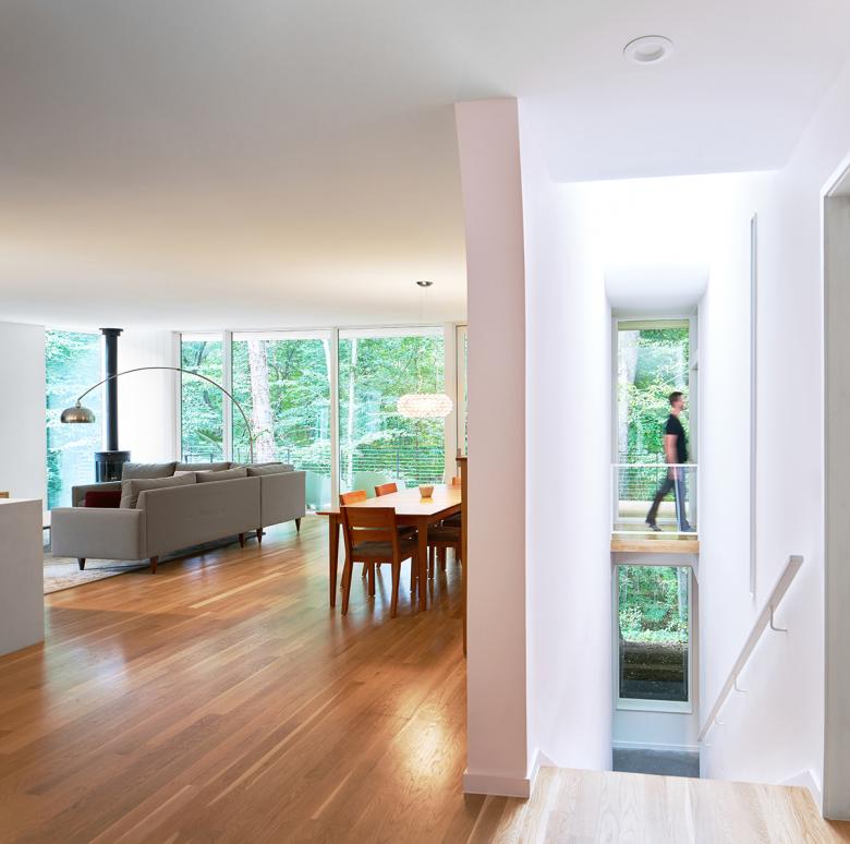 The initial ideas for the project were apparent when we first found the site, and our clients were immediately engaged by these ideas. The design process, therefore, was an effort of refinement and clarifying the big idea of engaging the deep ravine at the rear of the property.