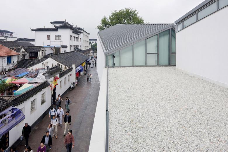 Many of the old buildings are turned into shops or restaurants, without residents. To oppose this trend, the new structure includes a program to stimulate artists and cultural activists to open their studios in town. The new Museum for Humanities and Arts, next to two more than 470 years old ginkgo trees, is dedicated to house paintings and other works of art related to the history of Zhujiajiao.