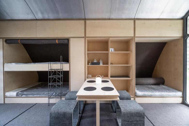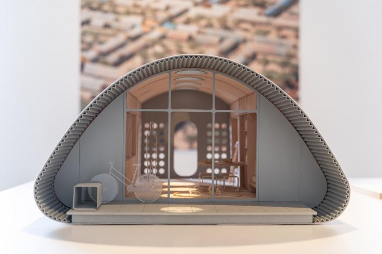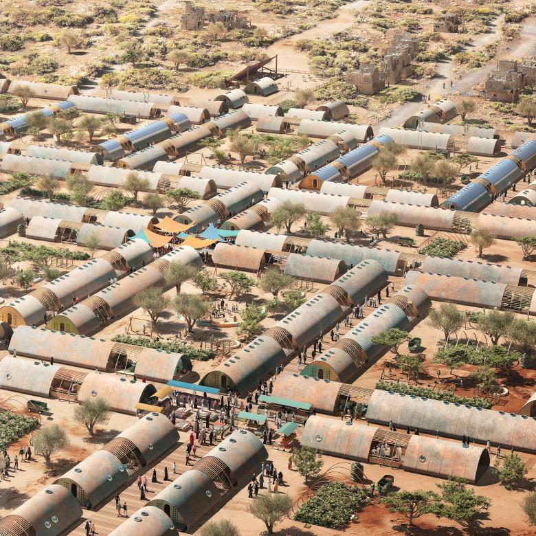As implied in its name, the Essential Homes Research Project takes the relatively permanent conditions of temporary refugee camps and emergency shelters as its starting point: “We should aim to design homes, not temporary shelters,” the NFF website says, “and we should be creating communities instead of camps.” And what is more permanent than concrete? But the proposal takes a somewhat novel approach, opting for rollable sheets produced with low-carbon cement (covering corrugated metal sheets and "smart" insulation systems) in lieu of more traditional precast concrete panels or poured-in-place concrete. The result is a handsome shelter that does not overtly display its concrete credentials.