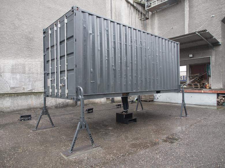 As part of Art Basel (16-19 June), Swiss artist Zimoun has installed hundreds of paper bags and DC motors inside an elevated shipping container. A small opening in the base of the container allows one visitor at a time to immerse themselves in the sound of the slowly moving bags.