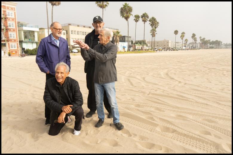 Frederick Fisher, Eric Owe Moss, Thom Mayne, and Craig Hodgetts reunite on Venice Beach for a Rebel Architects photoshoot. (Photo: Ave Pildas, courtesy of FORT: LA)