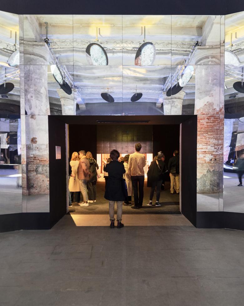 The majority of the exhibition consists of four parts in two venues. The Laboratory of the Future begins in the Giardini with Force Majeure and its presentation of sixteen practices of African and Diasporic architectural production in the Central Pavilion. The exhibition continues in the Arsenale with the large Dangerous Liaisons section, in which “practitioners working at the productive edge between architecture and its myriad ‘others,’” Lokko writes in the exhibition's catalog, “charting new territories of professional and conceptual relevance and urgency.” Guests from the Future, the work of young African and Diasporan practitioners, threads through both venues, while the Curator's Special Projects — in the categories of Mnemonic; Food, Agriculture and Climate Change; and Geography and Gender — sit at the far end of the exhibition in the Arsenale. Additionally, the exhibition has a large-scale installation at Forte Marghera in Mestre and Carnival, a six-month-long cycle of events, lectures, panel discussions, films, and performances leading up to its closure in November.