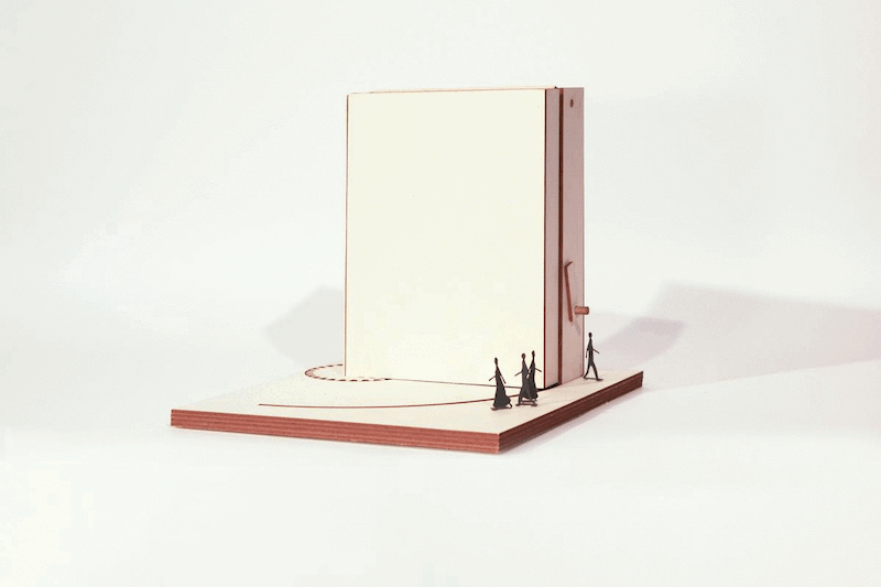With its smaller size, a working model of the movable Babyn Yar Synagogue, reinforces the link between building and book... (Image: Manuel Herz Architects)