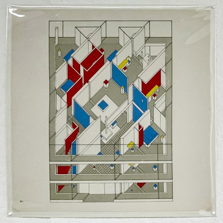 Hejduk was inspired by artists Piet Mondrian and Theo Van Doesburg, who both rotated the canvases of their paintings 45 degrees, and nowhere is this more evident than in Hejduk's drawings and models featuring primary colors.