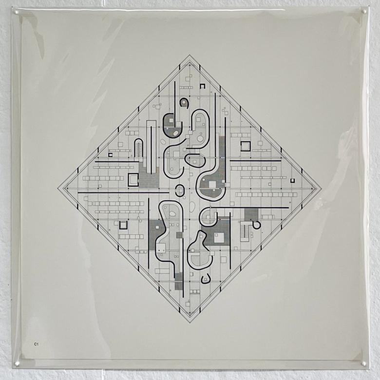 Although “diamond” is the term mentioned in the 1967 exhibition, the three projects are more accurately squares, complete with 90-degree corners; rotating the plan 45 degrees had “formal ramifications [that] were shattering” to Hejduk.