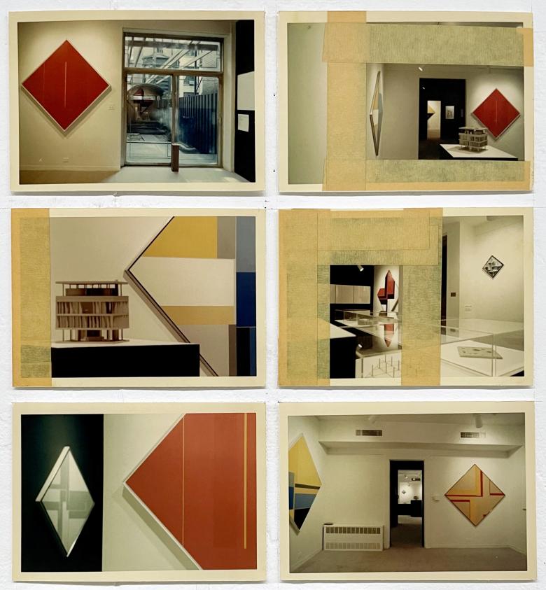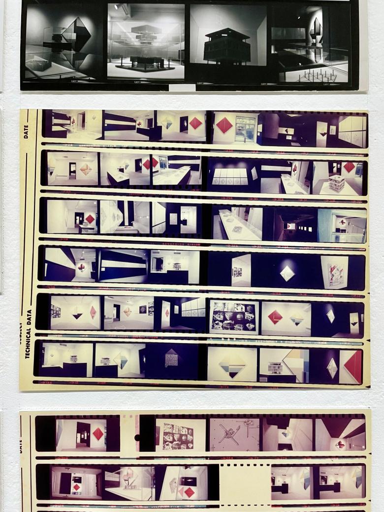 The display in John Hejduk: Three Projects that documents the 1967 exhibition includes numerous photographs of the installation at the Architectural League.