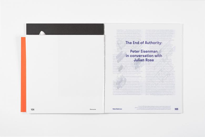 This theme and question are addressed by sixteen architects and critics across 156 pages — 156 pages with various papers and sizes. The diversity of voices is paralleled by the book's design, which has at least three types of paper and a plethora of inserts — multiple books within the book. Though a scholarly publication, flipping through the book can be giddy, as each turn of the page reveals something new, unexpected. Below is a quick tour through a few parts of Discourse 1—Authorship