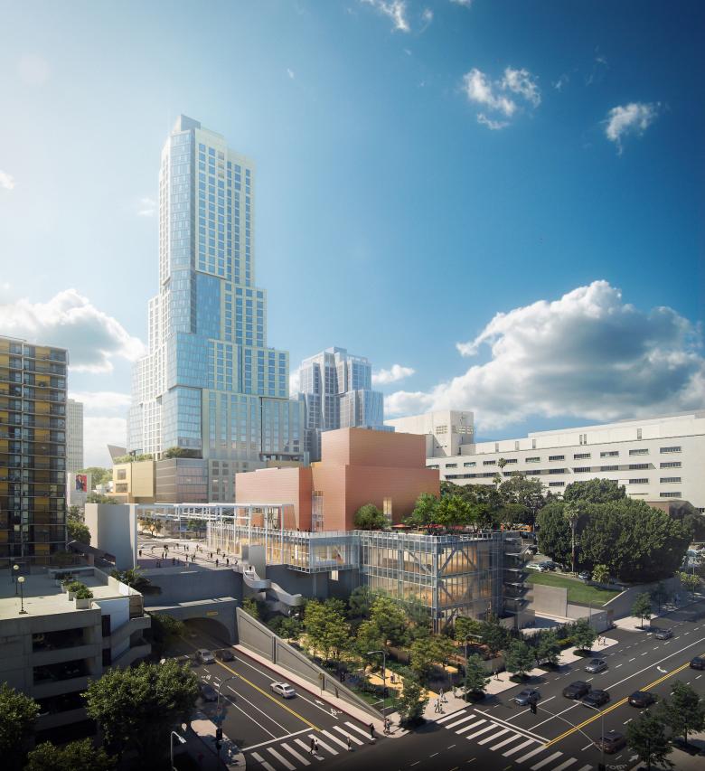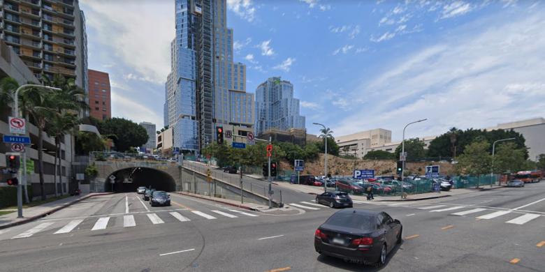 A similar view from Hill Street and 2nd Street intersection as of June 2021, with The Grand, also designed by Gehry Partners, beyond. (Photo: Screenshot from Google Maps)