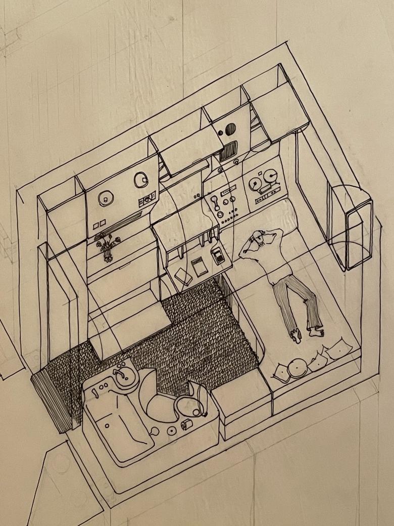 …one of which features an axonometric view of one of the capsules and its built-ins.