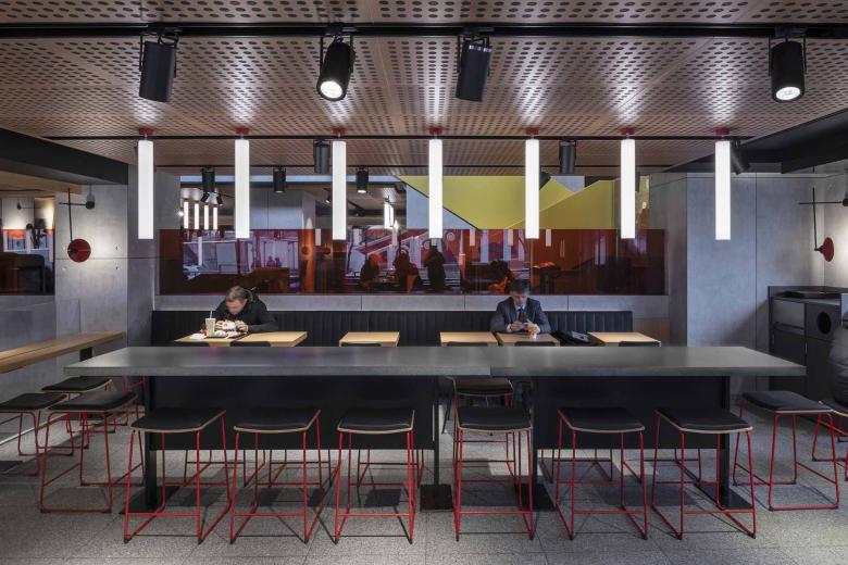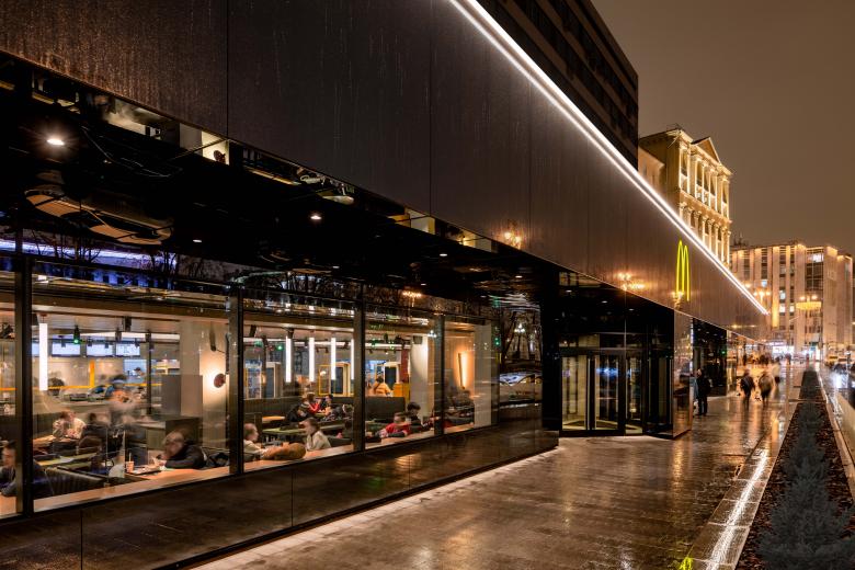 Landini Associates is no stranger to the Golden Arches. The Australian design and brand consultancy is responsible for a slew of McDonald's restaurants around the world, including a three-story location in New York's Times Square, a flagship store on Oxford Street in London, and the sustainably minded flagship in Chicago, where the firm handled the interior design. The latest iteration for Pushkin Square is part of "Project Ray," which launched in Hong Kong in 2015 and is described by the firm as a "complete reinvention of the world’s largest restaurant chain, including master-planning, architecture and interior design, brand positioning, graphics, packaging, uniforms and global design standards and guidelines" toward "re-attracting millennials to the brand by challenging their expectations."