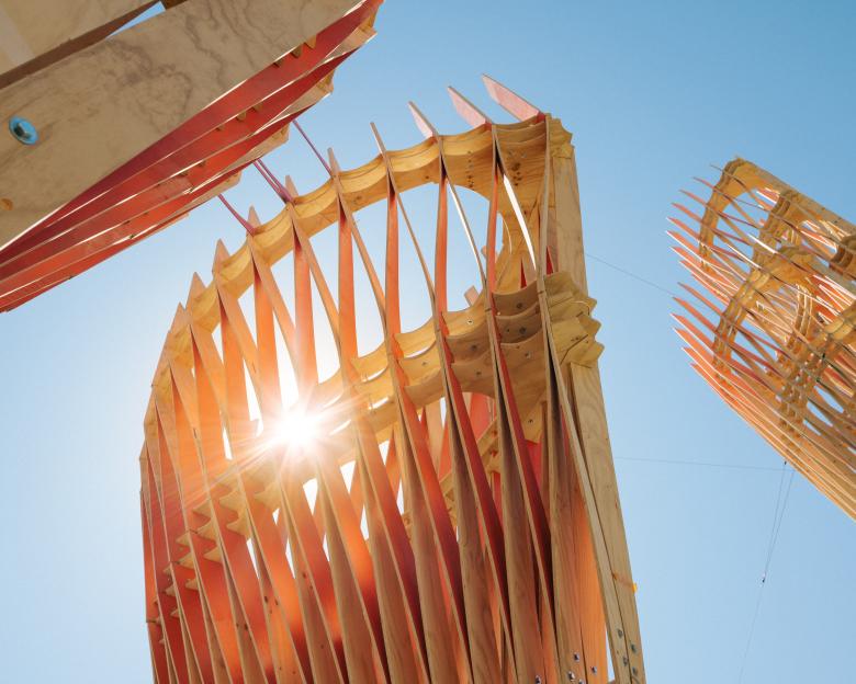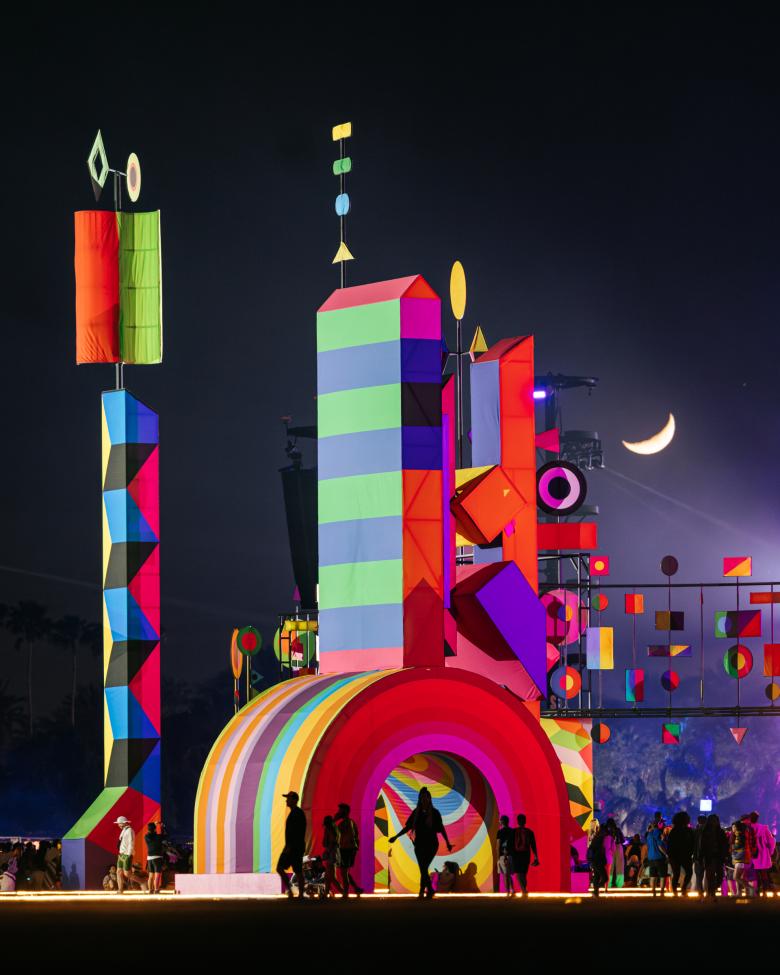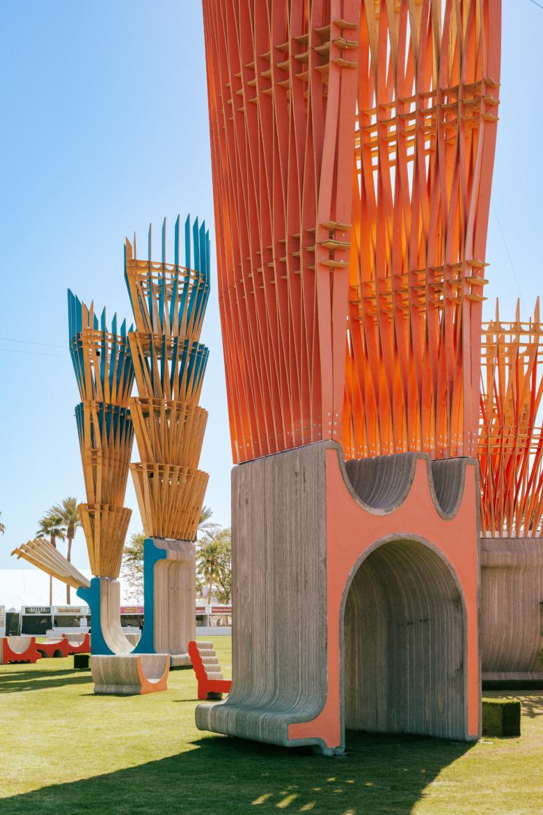 Coachella firist got our attention five years ago, when architect Francis Kéré designed Sarbalé Ke, an installation made of twelve colorful, patterned towers, some reaching heights over 60 feet. Then in 2022, after two years of cancellations due to the pandemic, the standout art installation was The Playground, a fittingly titled construction by Architensions.