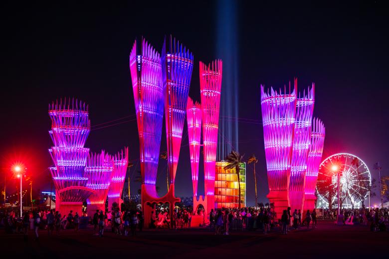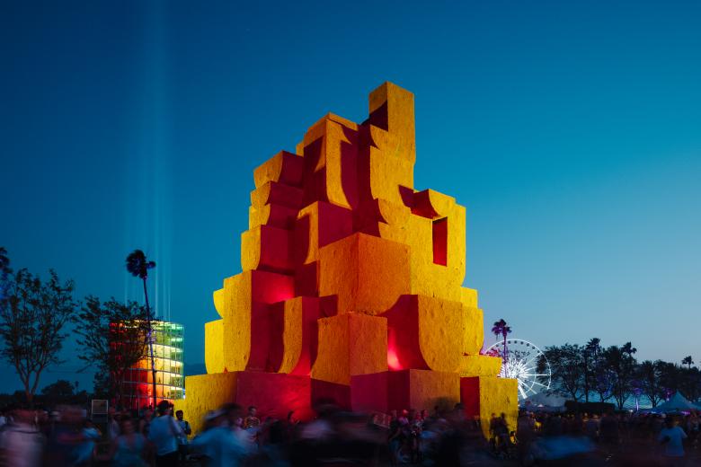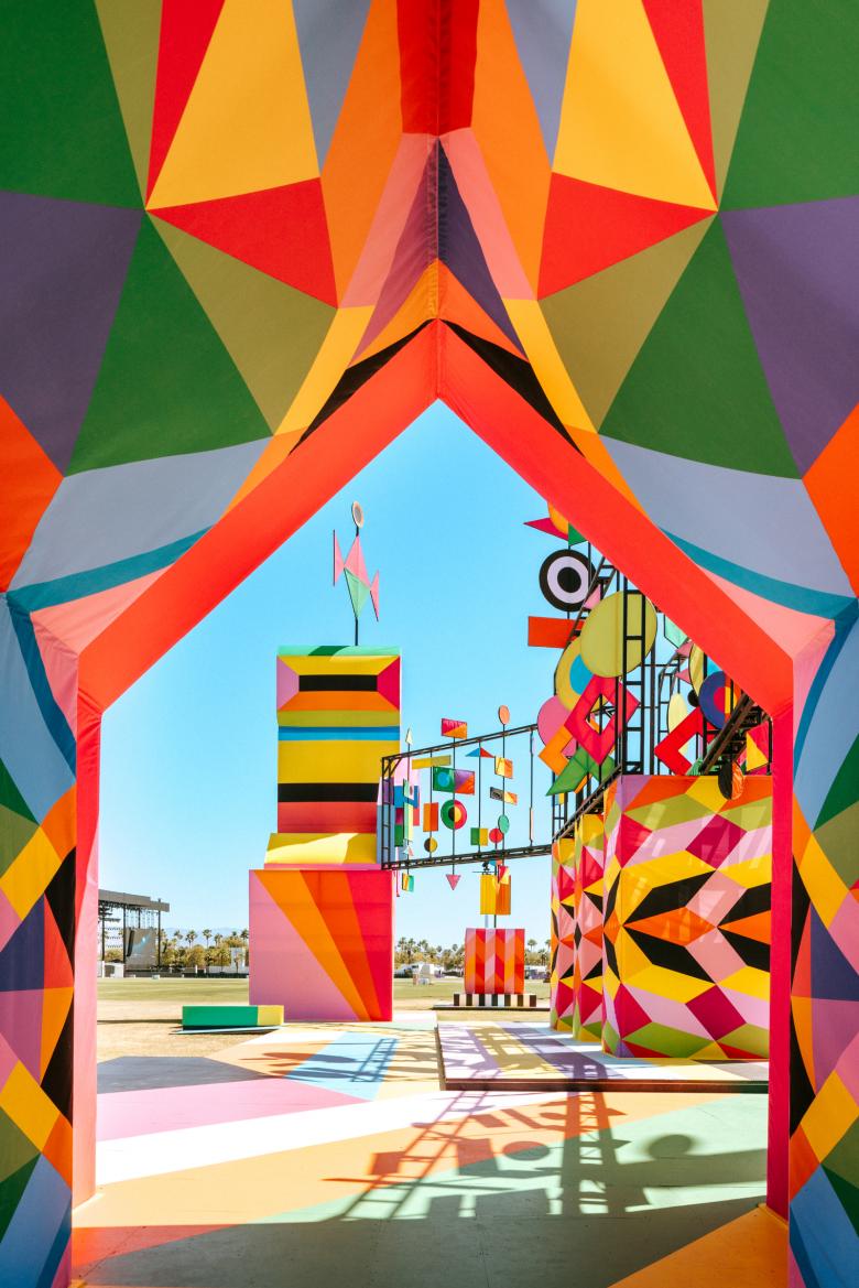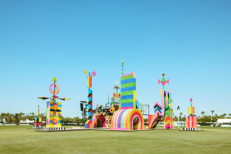 The 23rd Coachella Valley Music and Arts Festival is taking place over two weekends in April at the Empire Polo Club in Indio, California, near Palm Springs. As in previous years, the grassy expanse between the mountains is the setting for colorful large-scale artworks that serve as backdrops for the musical performances.