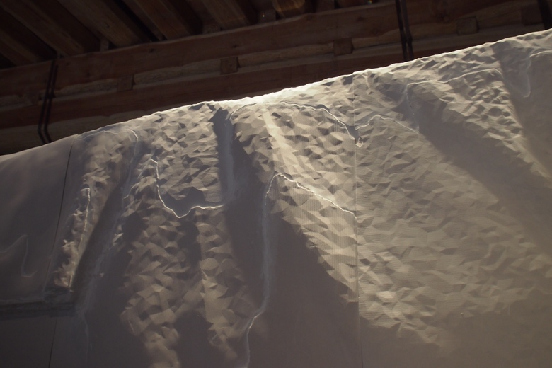 Cormier's collection of reproductions looks like it's just that at first glance, but digging below the surfaces reveals many unexpected objects and processes. Through the triumphal arch at the entrance, for instance, sits a cubic mass that is in fact a digital scan and stone print by Sam Jacob Studio of a refugee shelter, which elevates an ephemeral piece of hardship to the level of historical works of art. Other participants tackle even more fleeting occurences, such as David Gissen's "preservation" of leaks through the capture and digital manipulation of the sounds of drips in various spaces, and Andreas Angelidakis's models of virtual environments in Second Life.