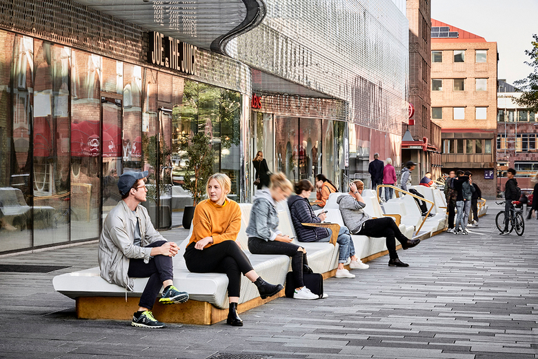 It's hard not to be seduced by the undulating lines of the "sofa" – a more accurate term than "bench," given how the seating invites people to take a break from shopping and literally lounge across its surfaces. Uppsala, a town of about 170,000, is home to 60 White employees at a branch office just across the river from Forumtorget (Forum Square in Swedish). In a sense they created a place where they – and other residents – want to be, in what happens to be one of the most important public spaces in the city.