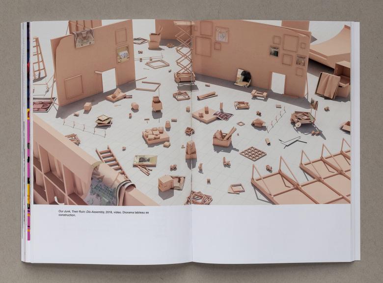 Instead of using highly polished renderings just to imagine speculative assemblies, Our Junk, Their Ruin is a video that depicts the dis-assembly of a virtual diorama, a scattering of objects and illustrations that reflects the real junk in our real environments.