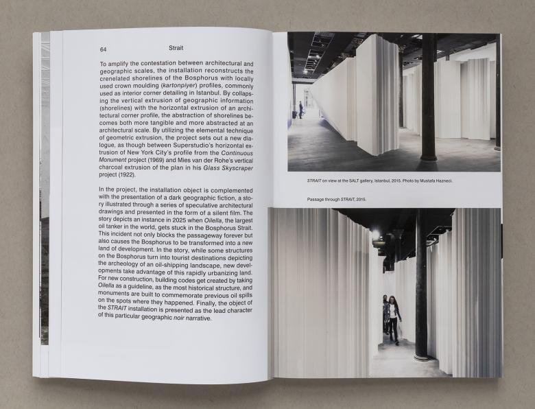 The Strait installation was complemented by a short film in the form of an architectural narrative: Oilella, the largest oil tanker in the world, gets stuck in the Bosphorus Strait in 2025.