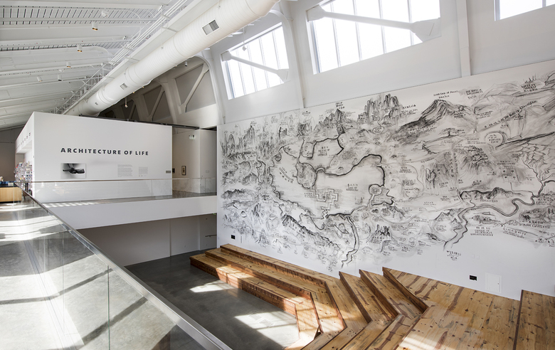 Architecture of Life, on view at the University of California, Berkeley Art Museum and Pacific Film Archive, January 31–May 29, 2016. Installation view of Qiu Zhijie: The World Garden. (Photo: Sibilia Savage)