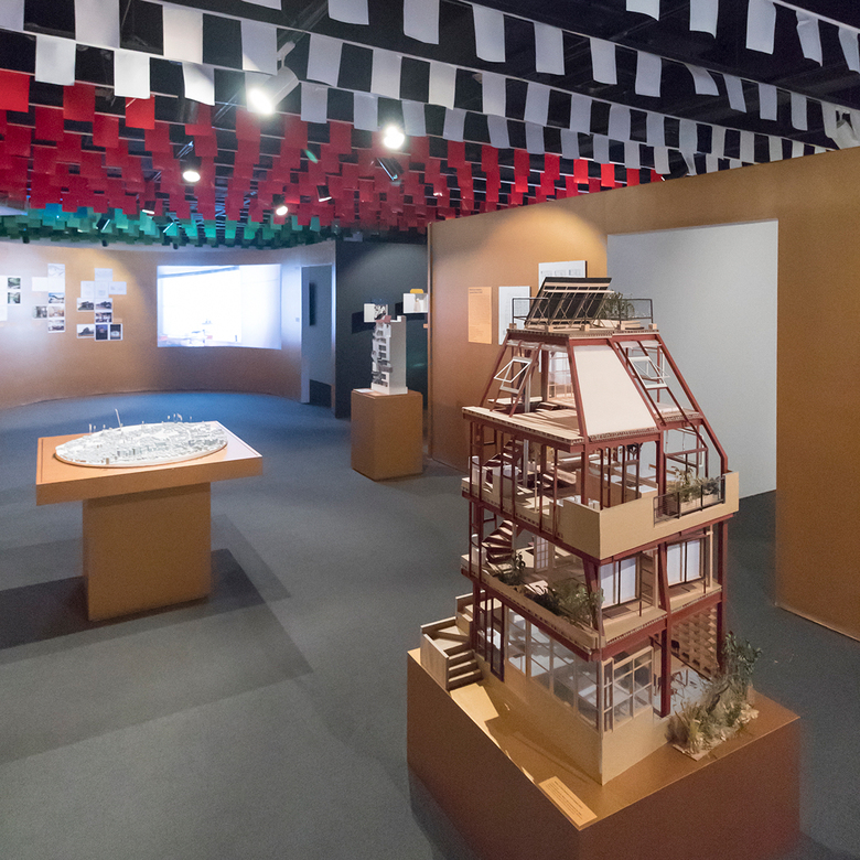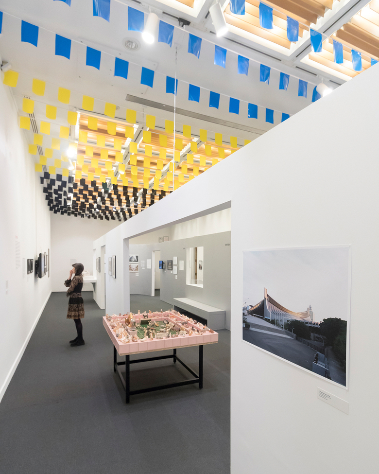 The exhibition presents projects from around the time of the 1964 Olympics alongside recent projects, thereby comparing, for example, the National Stadium from 1958 and Kenzo Tange's Yoyogi National Stadium from 1964 with Kengo Kuma's New National Stadium now under construction. During the opening, Momoyo Kaijima described how their practice has worked across the six typologies they selected for the exhibition. They designed stadium seating for a giant game of foosball at the Yokohama Triennale 2005; they designed Muji stores with places for students to do their homework after school; and they highlighted their own home and studio in Shinjuku. Though full of projects by other architects, the duo explained in effect how the exhibition is highly personal.