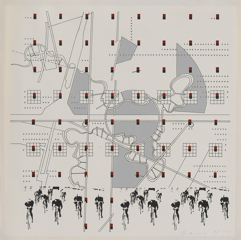 Bernard Tschumi, “#4 K Series,” 1985. Study for “La Case Vide: La Villette,” Folio VIII, 1985. Photostat with hand-applied enamel paint, 16 15/16 x 17”. Collection of the Alvin Boyarsky Archive.
