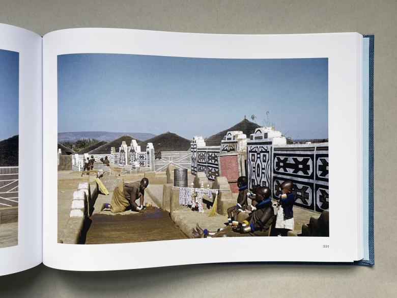 Even though Scott Brown was drawn to Main Street and other “ordinary architectures,” there are enough photos of capital-A architecture to warrant a chapter with “Extraordinary Architectures.” We see buildings in such places as New York City, London, and California, with the last including Simon Rodia's Watts Towers, Greene & Greene's Gamble House, and Rudolph Schindler's Lovell Beach House (above). Although these are famous works of high architecture, they are documented by Scott Brown similarly to other places and subjects, with a style that is more documentary than architectural. A standout in the following, the second “Fleeting Moments” chapter, is Scott Brown's documentation of women in a village near Pretoria, South Africa, grading pathways and painting colorful patterns on earthen walls. Seemingly idyllic, Kornblatt describes the series of photos (below) as having “a fraught backstory,” given how the residents were relocated there and the land was not sufficient for them to subsist on.