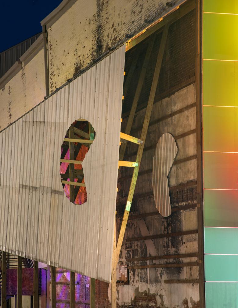 The siding has a theatrical quality, as if the side of the building has been lifted to reveal a hidden space behind it. (Photo: Hadley Fruits for Landmarks Columbus Foundation)