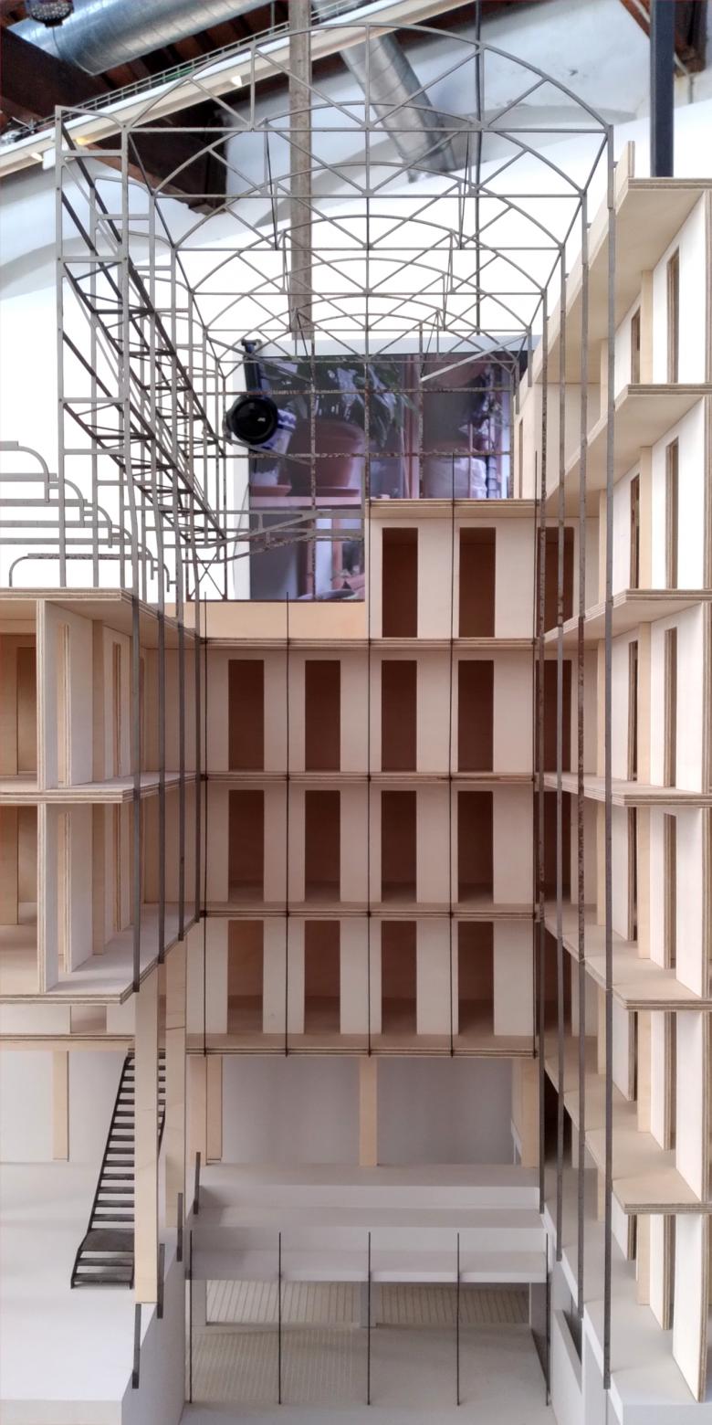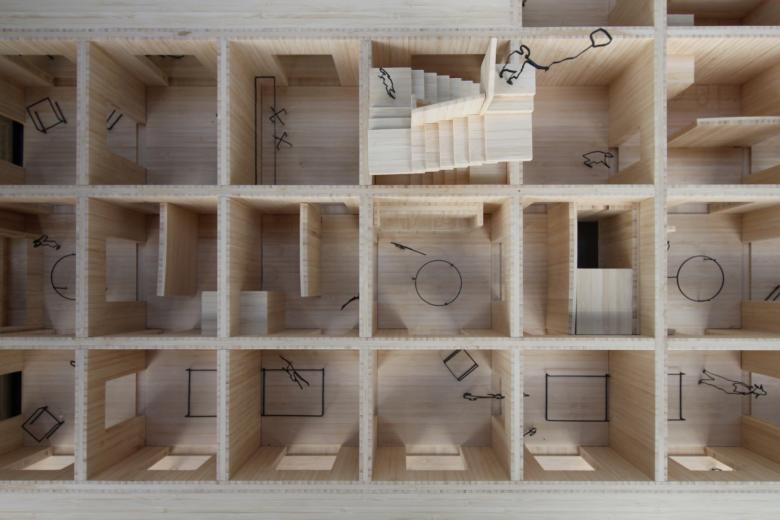 The cutaway model of La Borda emphasizes the full-height atrium that provides a sense of community for the 28 units and also plays an integral role in the natural ventilation and passive/heating cooling of the building.