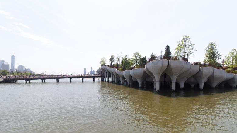 Looking at the area's industrial past is not uncalled for; after all, Little Island is just one block from the southern end of the High Line, the elevated park that occupies a former railway viaduct. Similarly, Little Island sits on a stretch of the Hudson River that was primarily industrial, with dozens of piers jutting into the river from the bulkhead (seawall) that was built in the 1800s from the Battery north to 59th Street.