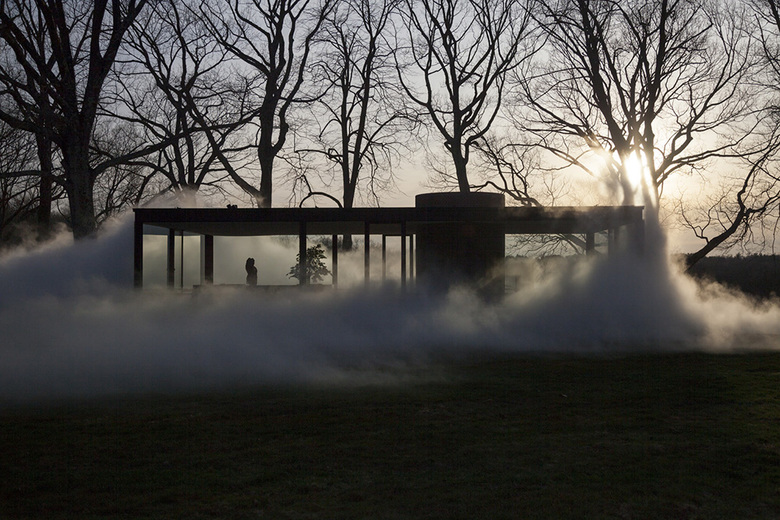 Since Henry Urbach took the helm of The Philip Johnson Glass House in 2012 his curatorial initiatives have been relatively small, such as the flower arrangements and Ken Price sculpture inside the now 65-year-old Glass House that we saw on our visit that same year. But the 2014 installation, Fujiko Nakaya: Veil, guarantees to make a strong – if fleeting – impact on the iconic heart of the 47-acre campus in New Canaan, Connecticut. For 10 minutes every hour the otherwise transparent Glass House will be shrouded in a mist engineered by Nakaya as fresh water is pumped at high pressure through 600 nozzles. After subsiding, the veil of mist is sure to accentuate the transparency of Johnson's signature building for both first-time and return visitors. Fujiko Nakaya: Veil runs from May 1 to November 30, 2014.