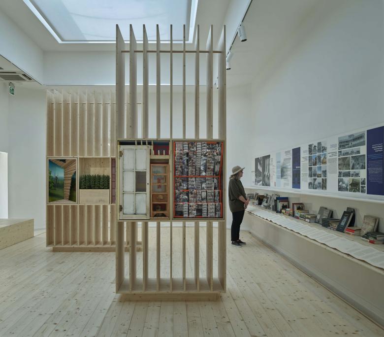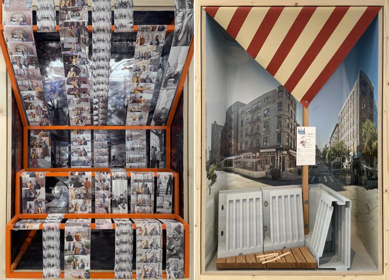 In addition to its attention-getting canopy designed by Marlon Blackwell Architects, the US Pavilion at this year's Venice Architecture Biennale features 54 contributions from American architects addressing the theme PORCH: An Architecture of Generosity. World-Architects took photos of some of the so-called “Porch Windows” on display inside the pavilion and presents them here.