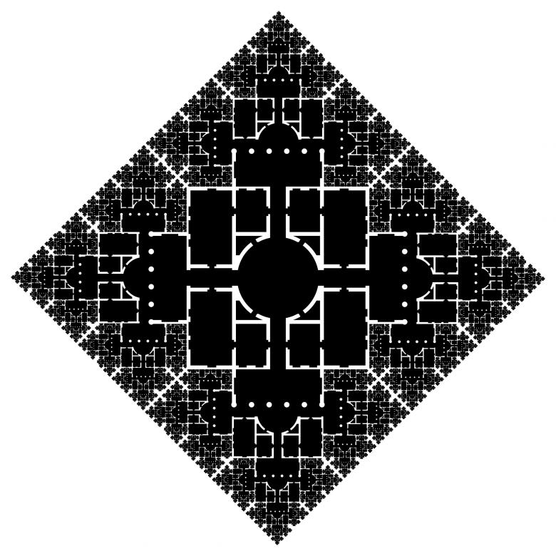 The last section, Generations, includes drawings generated by algorithms, drawings that "demonstrate the rich and diverse territory of architectural drawing as a medium for generative design. “Another Villa” by Outpost Office is a fractal-like image based on the plan of Andrea Palladio's Villa Rotunda.