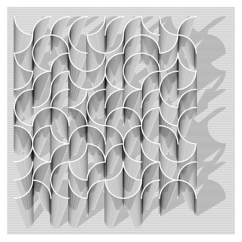 Andrew Kudless and Adam Marcus's adoption of stringent restrictions — no color, square format, no perspectives — combined with a freedom to produce drawings by hand, printer, or even a robot, yielded an extraordinary range of drawings, many of them incredibly detailed and complex. In moving the drawings from the gallery to the printed page, the authors — architects themselves — organized them into eight sections, twelve drawings in each, “according to emerging themes, workflows, and sensibilites in the way contributors interpret the relationship between architectural drawing and code”: Representations, Permissions, Opportunities, Translations, Fabrications, Frictions, Materialities, and Generations. The following visual tour through Drawing Codes pulls at least one image from each section.