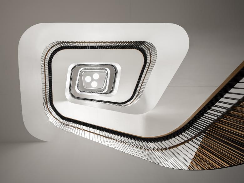 The curving lines of the stairs clearly signal that they are new elements within the Mies library. (Photo: Trent Bell)