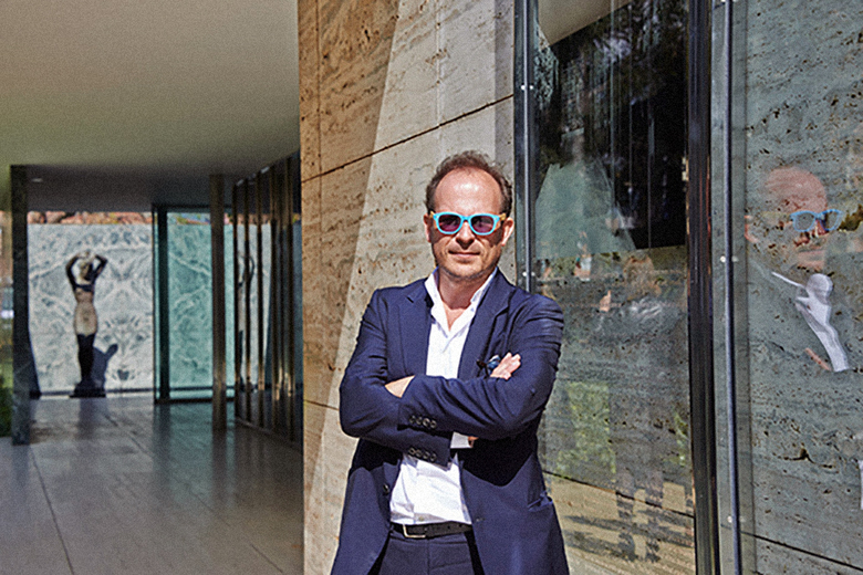In recent years the Fundació Mies van der Rohe has invited artists and architects to reimagine Mies's Barcelona Pavilion through some sort of intervention. Chinese artist Ai Weiwei replaced the water of the pools with milk and coffee in 2008, last year architect Andrés Jaque unearthed typically hidden objects from the pavilion's basement, and this year photographer Jordi Bernadó responds to Mies's desire for the building to be photographed without doors. Second Reconstruction moves the glass doors from under the roof and places them on the rear of one of the travertine walls, so in Bernadó's words, "the Pavilion once again becomes, temporarily, what Mies imagined."