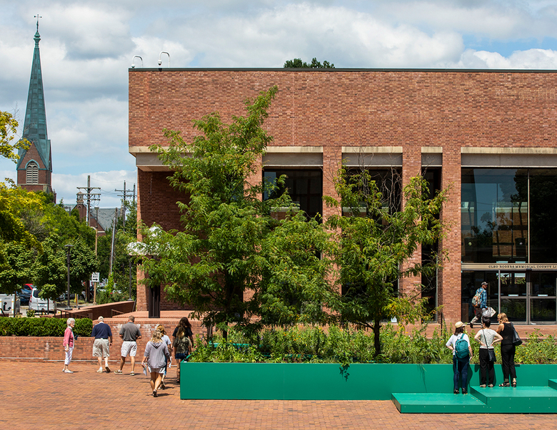 Agency Landscape + Planning, the Cambridge, Massachusetts, firm led by landscape architect Gina Ford and urban planner Brie Hensold, added planters and seating at the intersection of Franklin and Seventh Streets in front of the AT&T Switching Center, a reflective glass building designed by Paul Kennon in 1978. While XX softens the hard edges of the modern building at this intersection, the installation's motives are deeper: The planters feature plant tags with "personal memories and recollections of strong female leaders throughout history and the city of Columbus" based on a 2019 postcard campaign administered by Agency.