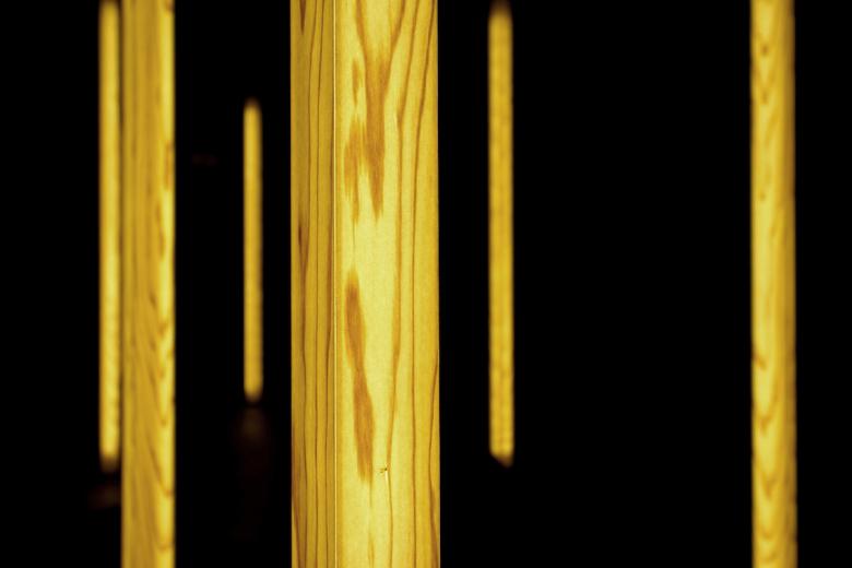 Izumi Okayasu Lighting Design wrapped wrapped square acrylic pipes with a thin slice of maple illuminated by LEDs.