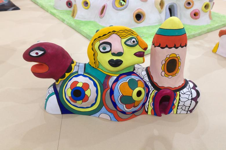 "I wanted to give visitors, especially children, a place of Joy, where they could enjoy art and nature together," Saint Phalle said about Tarot Garden, her magnum opus. Built over the course of two decades, starting in the mid-1970s, and featuring a visitor center designed by Mario Botta, Tarot Garden features 22 large-sculptures representing the Major Arcana from a deck of tarot cards. Some of the figures in this playground of fantasy are so big as to be inhabitable, with Saint Phalle actually living in The Empress, a Sphinx-like structure, for a time. The exhibition devotes some of its space to Tarot Garden, but it draws attention to other lesser known works that also convey the attention Saint Phalle gave to children.