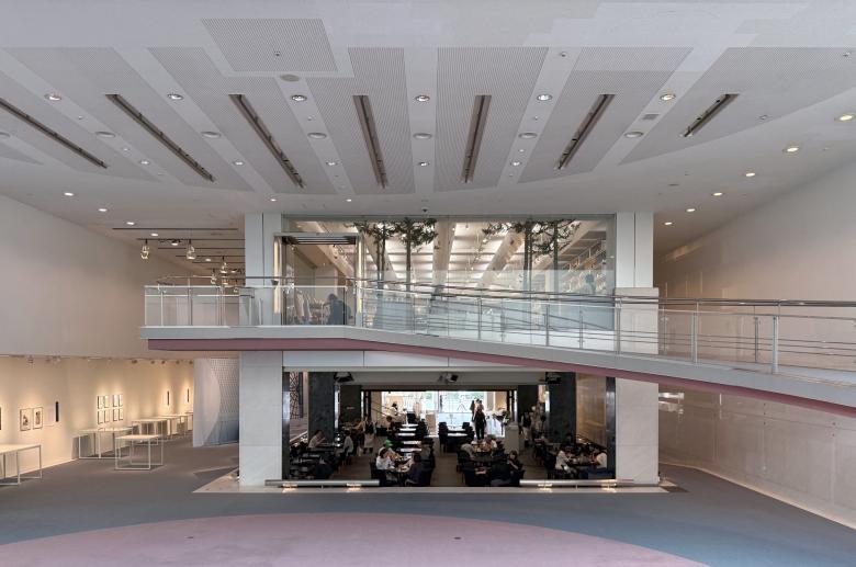 The space has been the setting for many works, some of them site-specific. In November 2016, the atrium featured an artwork by Emmanuelle Moureaux, 100 colors no.17 “color mixing,” as part of the exhibition SENSE OF MOTION.
