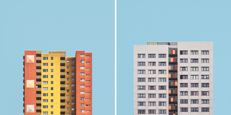 Berlin-based photographer Malte Brandenburg's Stacked series of photographs presents frontal views of his city's post-war housing estates in order to show the variation found in the "fairly identical" buildings.
