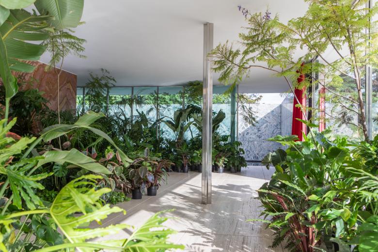 More specifically, the artist used Lina Bo Bardi's Casa de Vidro (House of Glass), “an example of how the Brazilian modern movement understood and incorporated nature,” as a reference. (Photo: Anna Mas)