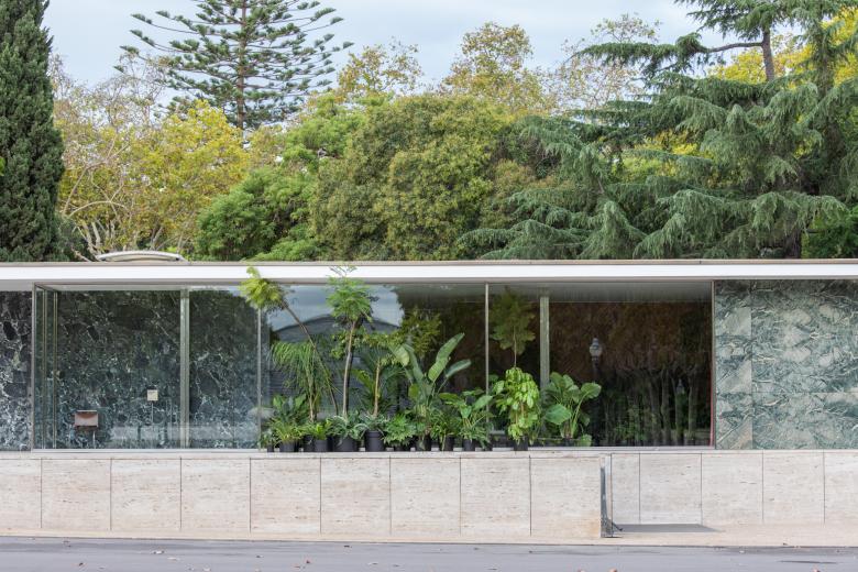 Nearly 100 years after it was built for the 1929 Barcelona International Exhibition, and nearly 40 years after it was reconstructed, Ludwig Mies van der Rohe and Lilly Reich's German Pavilion remains a must-see for architects and architecture students. Thanks to the Fundació Mies van der Rohe and its collaborators, those visitors may encounter a building dramatically different than what they see in photographs. In 2017, for instance, architects Anna and Eugeni Bach covered the pavilion's walls, floors, and ceilings with white vinyl, and in 2021 curators Ilka and Andreas Ruby turned the pavilion's covered spaces into domestic interiors echoing Lacaton & Vassal's EU Mies Prize-winning Transformation of 530 Dwellings in the Grand Parc Bordeaux.