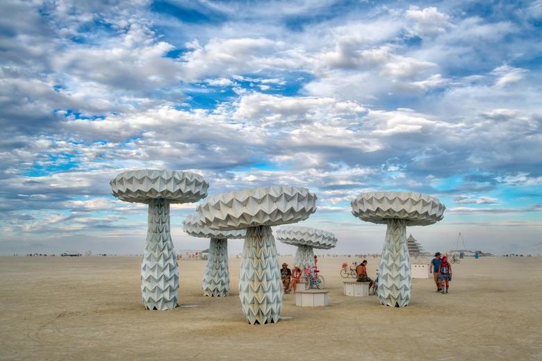When Kim Cook, Burning Man's Director of Art and Civic Engagement, spoke at the World Architecture Festival last year, she showed many images of some of the tens of thousands of people who spend a week on the "Playa," as well as the many art installations they create for the festival. But she also spoke about the Burning Man network, which takes the festival's participatory artworks from the temporary desert festival and into cities to share the ideals of Burning Man. No Spectators: The Art of Burning Man does this in two ways: through immersive room-sized installations, costumes, jewelry, and ephemera in the Renwick Gallery; and through an outdoor extension, No Spectators: Beyond the Renwick, that displays sculptures from Burning Man throughout the surrounding Golden Triangle neighborhood.
