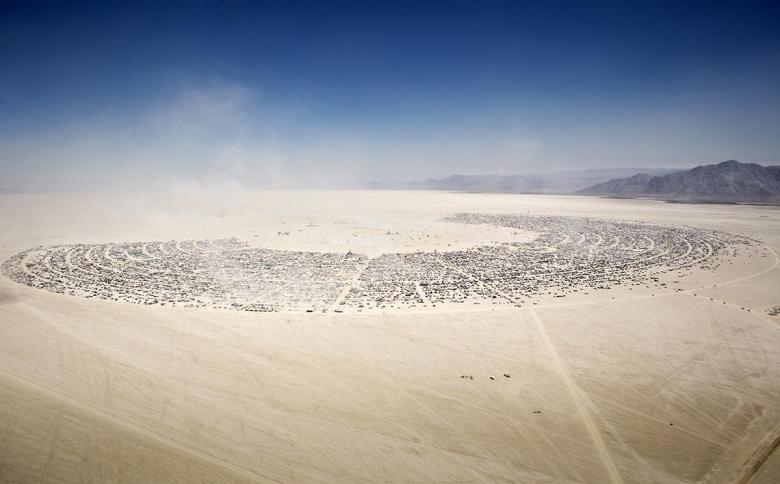 Aerial view of Burning Man gathering at Black Rock City, 2012 (Photo: Scott London)