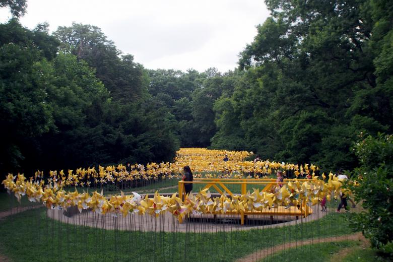 In celebration of Prospect Park's 150th anniversary, the famous Brooklyn park's Rose Garden has been taken over by 7,000 yellow pinwheels per a design by Reddymade Architecture and Design with AREA4.